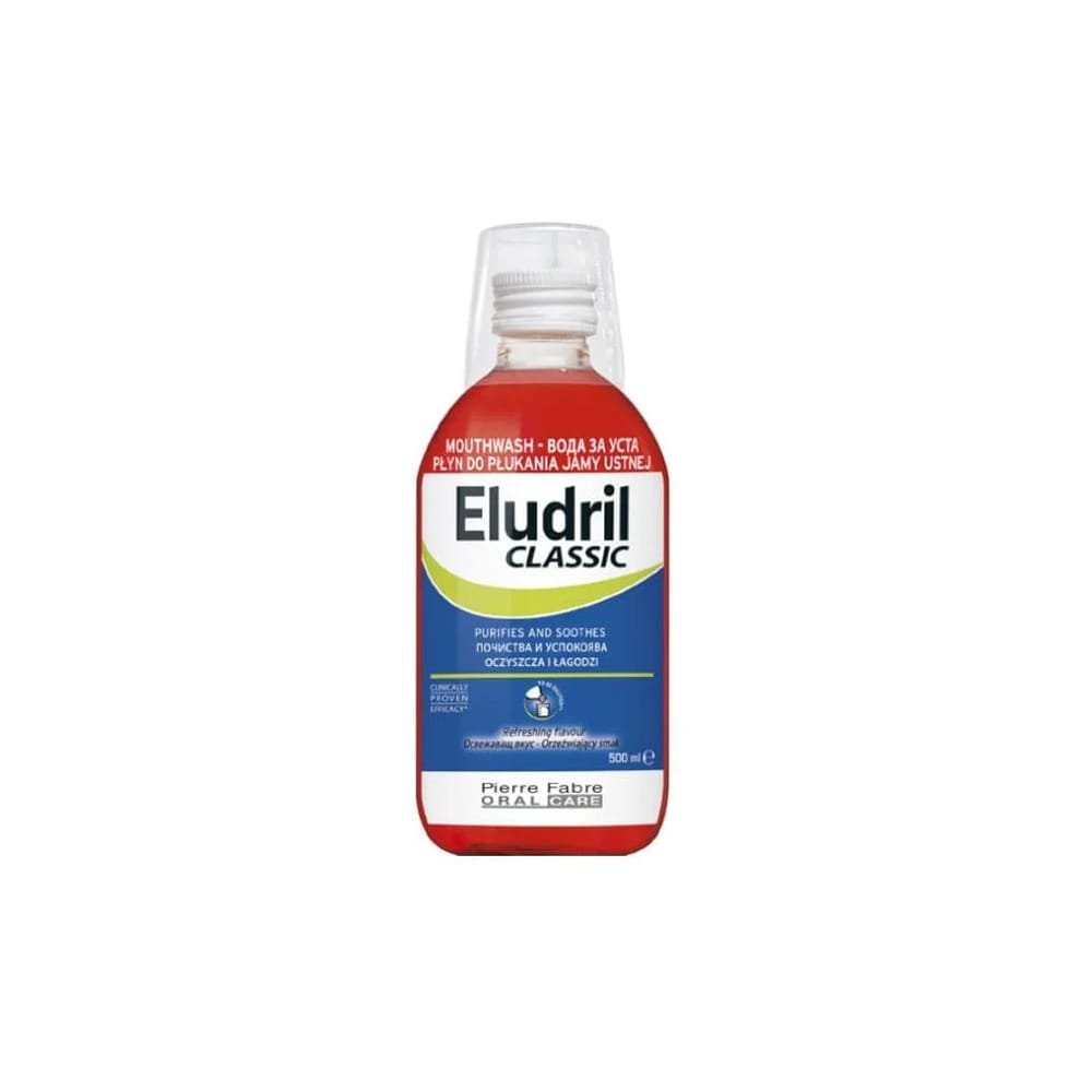 O Eludril Classic Colutório 500ml desinfeta a boca e protege as gengivas, combatendo bactérias e promovendo uma higiene oral completa. Ideal para uso diário, mantém o hálito fresco e a boca saudável.