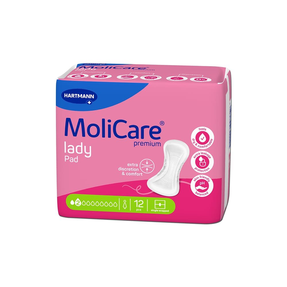 Molicare Premium Lady Pad são pensos absorventes femininos, anatomicamente moldados, para perdas de urina ligeiras a moderadas.