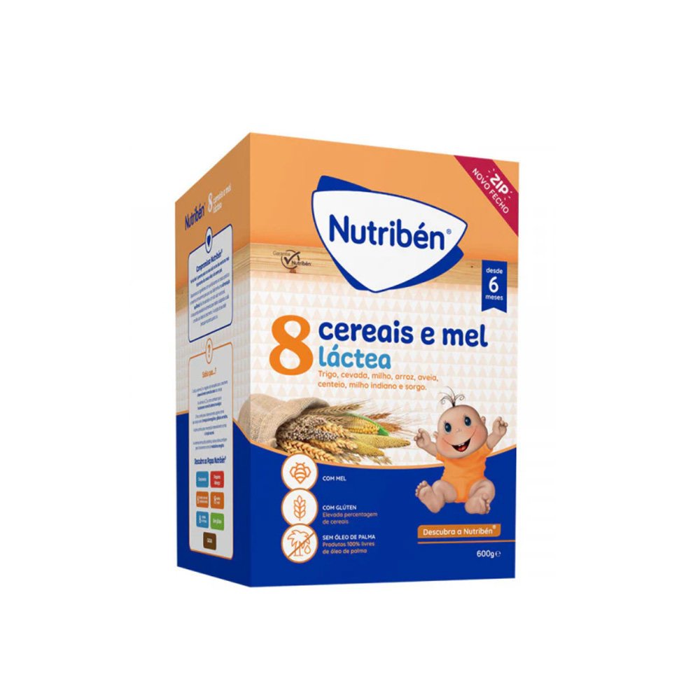 A Nutriben Farinhas 8 Cereais e Mel Láctea 600g proporciona uma refeição completa e equilibrada durante a fase de diversificação alimentar do bebé. A sua fórmula combina oito cereais cuidadosamente selecionados com mel, criando assim uma papa nutritiva, saborosa e fácil de preparar.