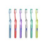 Escova de dentes com filamentos suaves e perfil ondulado, especificamente concebida para a higiene oral diária em adultos sem alterações dentárias ou das gengivas.